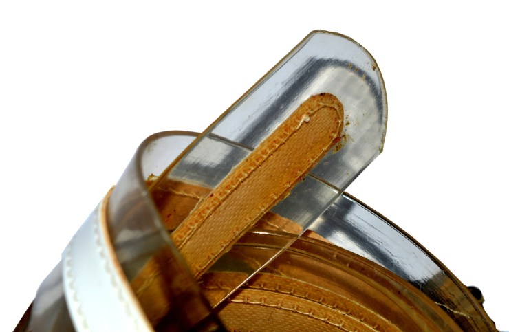 Il Museo della Resilienza ospita una cintura bianca “vinta” a Monterosso durante una pesca di beneficenza organizzata pochi mesi dopo l’alluvione dalla parrocchia locale. L’oggetto, proveniente da un negozio di abbigliamento del posto, presenta un lato esterno lucido privo di segni particolari e un lato interno poroso in cui, con una osservazione attenta, si possono notare evidenti tracce brune, dovute alla particolare composizione minerale del suolo (da cui deriva il nome del paese). La cintura poggia su una tipica scheggia di pietra rossa raccolta in loco. Questo oggetto rappresenta metaforicamente l’animo dei Monterossini, sempre desiderosi di mostrare un volto positivo ai turisti nonostante il doloroso ricordo di quegli attimi.